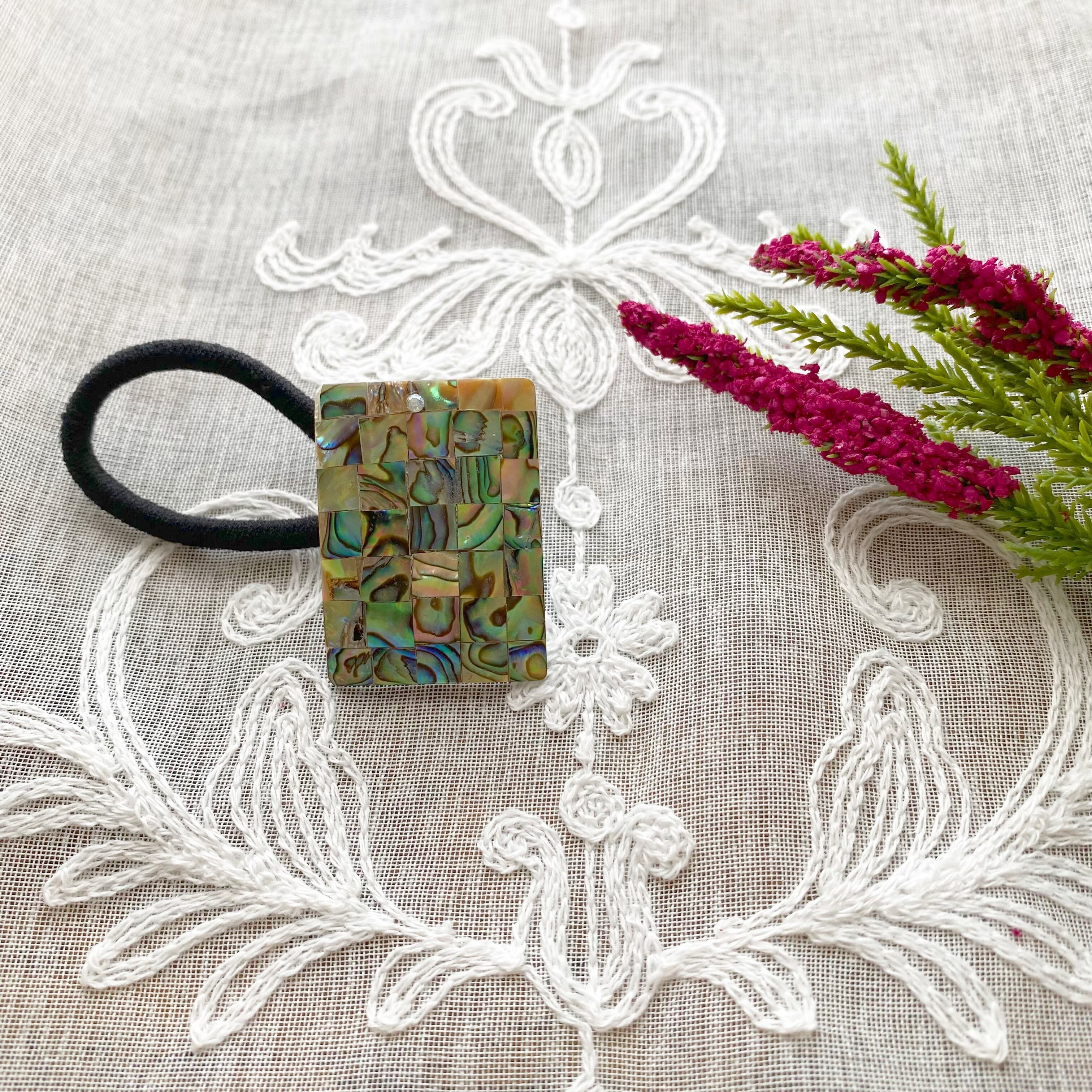 ◆ レインボーアバロンシェルはアワビ貝の一種で、採取された状態では普通の白っぽい貝殻ですが、長時間ていねいに手磨きをかけることで、色とりどりの光沢をまといます。